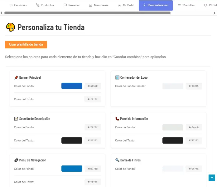 Edita colores, textos y presentación de tu perfil para que tu tienda se vea como tú quieres.