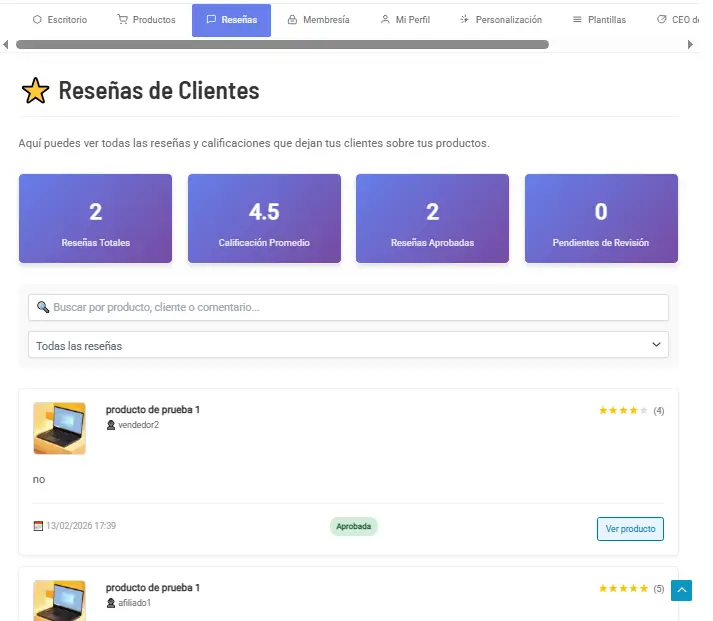 Consulta y gestiona las reseñas que dejan tus clientes para fortalecer tu reputación.
